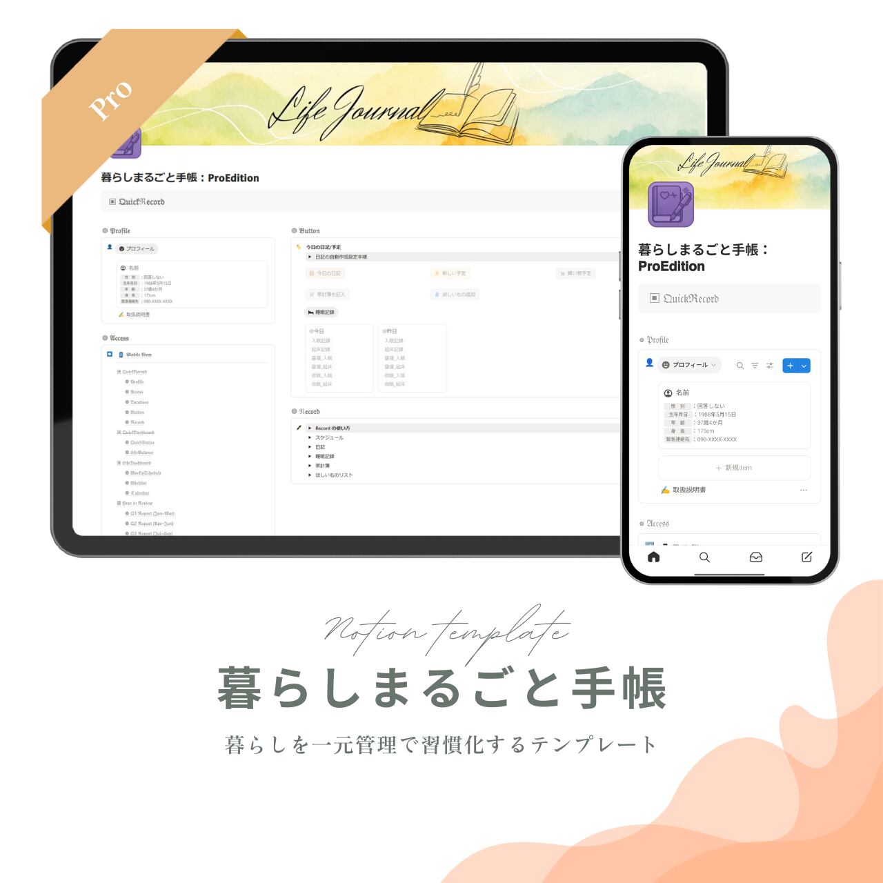 生活のログ(家計簿・睡眠記録・体重管理・日記・習慣トラッカー)をNotionで一元管理する統合テンプレートです。