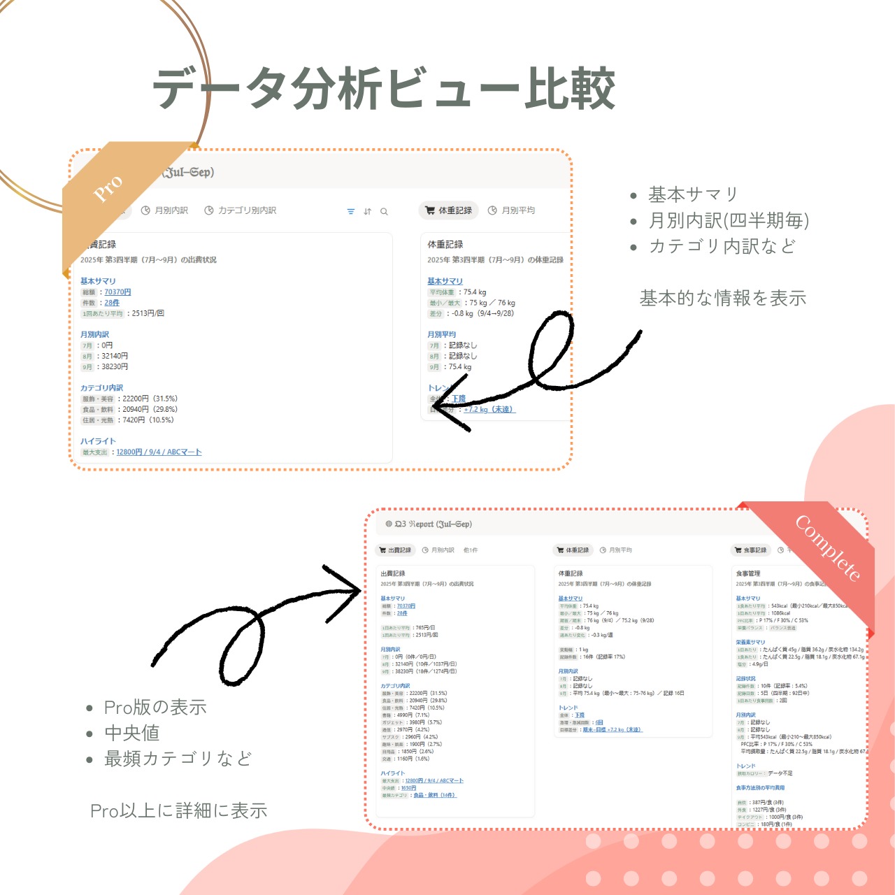 ◌ 月次/四半期/年間の支出・健康トレンドを比較
